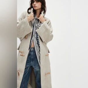 Totally timeless in a staple longline silhouette, this stunning coat is featured in a relaxed, slightly tailored fit with defined toggle-front closures for an added special touch.
