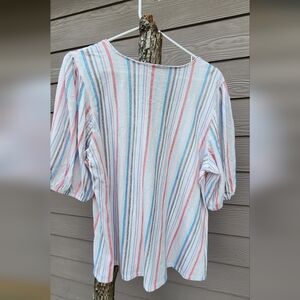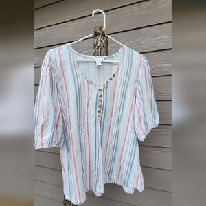 Intro. 100% Cotton Multicolor Striped Blouse with Button Detail