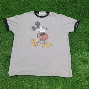 Disney Mickey-Mouse Ringer Shirt Womens Large 22x25 Gray
