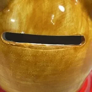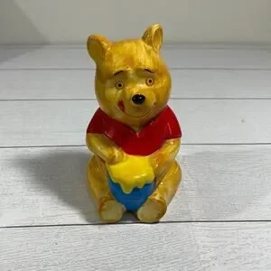 WALT DISNEY PRODUCTIONS Vintage 1980’s Pooh Bear with a honey pot bank. Please note that the rubber stopper is missing but is easily replaced. Please see pics for measurements. There is a very small chip of paint on back of piggy bank on the top left of the coin slot, see pics. Otherwise perfect condition.