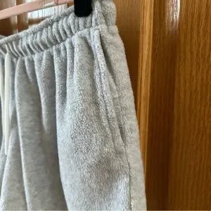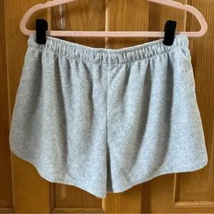 Light grey fleece lounge shorts with a drawstring waist and two pockets. In excellent condition.