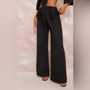 NWT Pretty Little Thing Black Wide Leg Linen Look Trousers 12 N78
