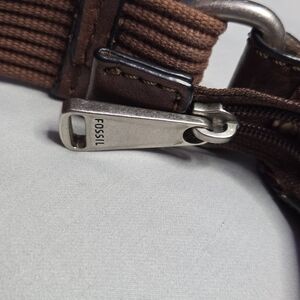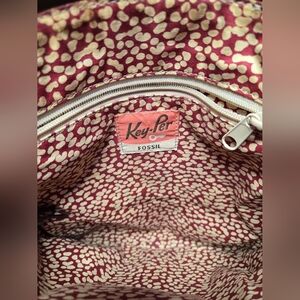 Hardware: Signature Fossil keyhole metal plaque and silver-tone zippers.
