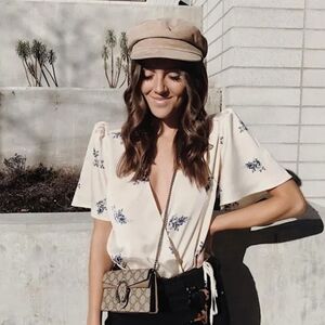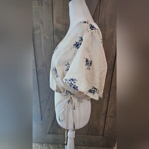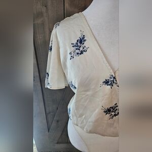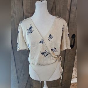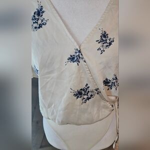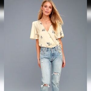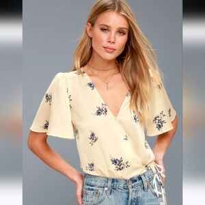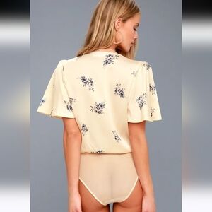 ASTR THE LABLE Hadley Cream with Blue Floral Print Bodysuit Lulus. Size Small