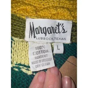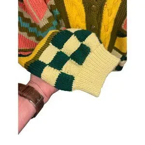 Vintage Handknit Chunky Knit Like Coogi Cardigan Sweater L Cotton Multicolor