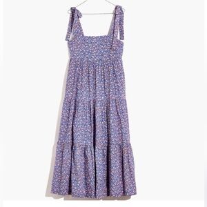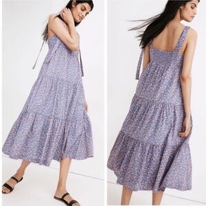 Madewell tie strap tiered midi dress summer vine print small