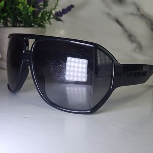 Stylish black sunglasses with a sleek design. Features the Givenchy logo on the side.
