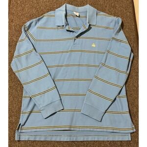 Brooks Brothers Performance Polo Shirt Mens Medium Navy Striped Long Sleeve