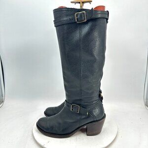 FRYE Carmen 14L Women Size 7.5B Black Leather Inside Zip Black Oiled Suede Boot