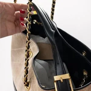 This elegant women's bag features a sophisticated quilted design in black and tan. Perfect for any occasion, it combines style and functionality.