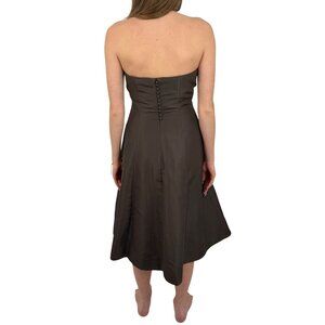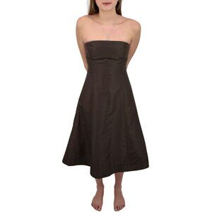 VTG 90s J.Crew Brown Silk Strapless Midi Dress | Elegant Tulle Lined A-Line Gown