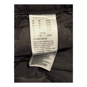 American Eagle Mom Straight Jeans Black Wash Distressed Denim Size 00 Short