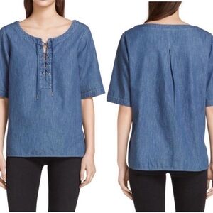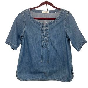 Rag & Bone Chambray Lace Neck Short Sleeve Popover Top Women’s Small