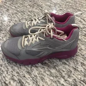 Reebok Gray and Purple Athletic Shoes with Supportive Midsole