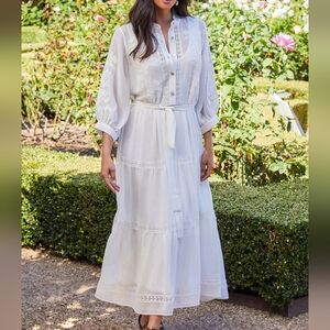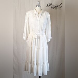 Karen Kane Ivory White Embroidered Chiffon Boho Long Sleeve Maxi Shirt Tie Dress