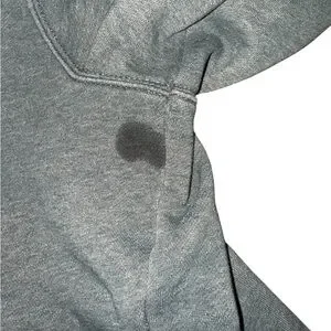 There is a small stain on the right sleeve and a stain on the left armpit. Pit to Pit - 21 1/2 inches Length - 24 1/2 inches