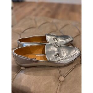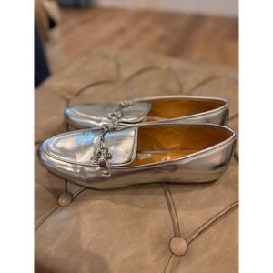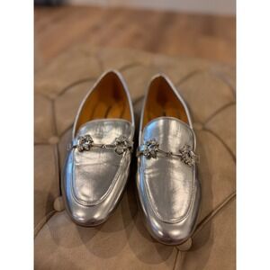 Nine West Silver Metallic Rhinestone Crystal Bit Loafers Womens 9.5M Flats