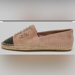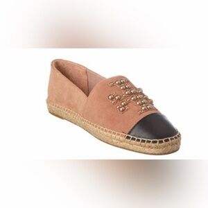 Tory Burch pearl logo cap toe leather and suede espadrille. Size 9.5. EUC
