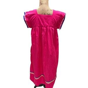 Keywords: Club Caribe dress, pink dress, fuchsia dress, embroidered dress, floral embroidery, boho dress, casual dress, long dress, maxi dress, square neck dress, cap sleeve dress, pullover dress, lightweight dress, dress with pockets, women’s large dress