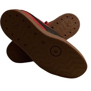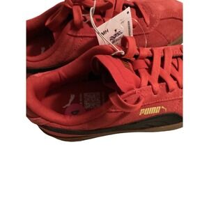 Puma Suede Red Black Gum Low Top Sneakers Gold Logo Youth 4