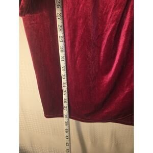 This Nine West dress is a stunning jewel-toned crushed velvet faux wrap mini dress in a rich red color. It features a V-neckline, long sleeves, and a pullover closure. The dress is designed in a size 2XL, making it a plus-size option for women. Perfect for winter and fall occasions, this dress is ideal for events such as weddings, parties, cocktail parties, and formal gatherings. The luxurious velvet fabric with a hint of stretch adds a touch of elegance and romance to the overall look.