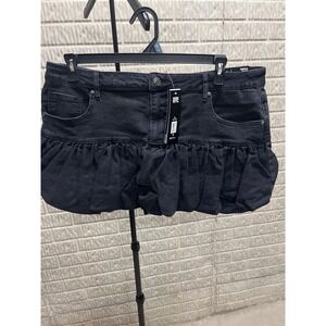 Madden NYC Black Denim Bubble Skirt Mini Size XL NWT Streetwear Y2K Puff Hem