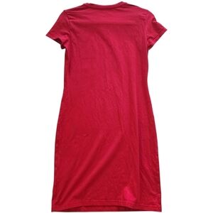 Step out in style with the TNA sheath dress, showcasing a striking red color and a classic crew neck. Designed for casual occasions, this dress features short raglan sleeves that add a sporty flair. The midi length ensures a chic and versatile look for any relaxed outing.