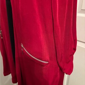 Red cardigan with zipper pockets like new condition. Size 3 Chicos is XL/16