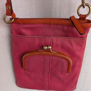 Bonnie Cashin kisslock crossbody bag in fair condition. Stitching in tact but some staining on interior fabric and some wear on the bottom and accent leathers.