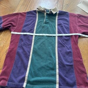 Retro John Henry Mens Rugby Shirt Colorblock Jeweltones Long Sleeve Cotton M