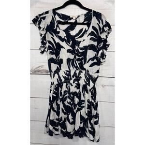 Elan Dress Size SM White With Blue Black Floral Lightweight Easy Comfy