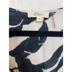 The Elan dress in size SM is a white dress with blue and black floral patterns, making it a vibrant and stylish choice for casual occasions. This lightweight and comfortable dress is perfect for the spring and summer seasons, with a pullover closure for easy wear. The short length and sundress style add a fun and feminine touch, while the floral theme adds a touch of nature to your wardrobe. Made for women who enjoy easy and effortless fashion, this Elan dress is a versatile and trendy addition to your collection.