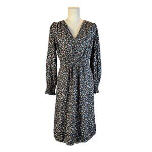 Rebecca Taylor Zelma Floral Silk Midi Dress Women’s 4 Black Cottagecore Prarie