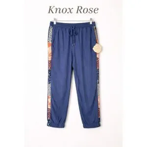 Knox Rose Blue Lyocell Jogger Small Boho Side Stripe Drawstring Casual Lounge