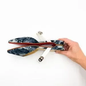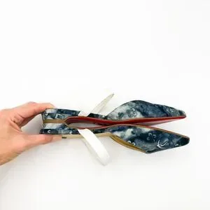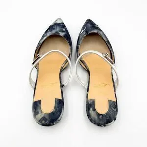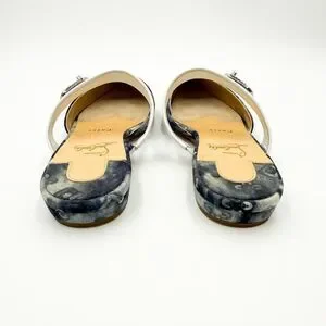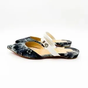 Authentic Christian Louboutin Choc Lock Pointed Toe Denim Canvas Flats Mules