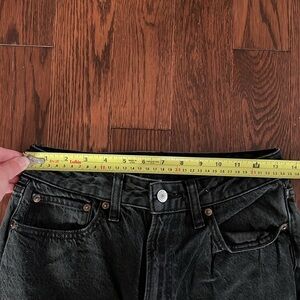In good, used condition. No holes or stains. Colour name is washed black. Curve love, regular length. Approximate measurements provided.
