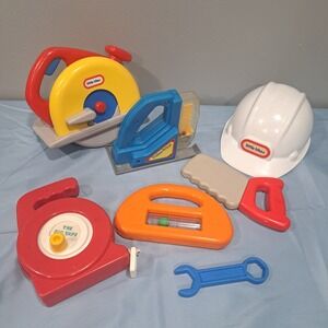 VTG Little Tikes Fisher Price Toy Tool Set Saw Hard Hat Tape Measure Level