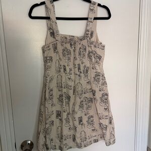 Chic cream dress with artistic black print. Ideal for everyday wear.