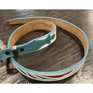 RARE Nacona Leather Belt Size 36 G412 Turquoise Blue Burgundy Atzec Western
