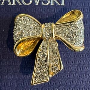 Authentic Vintage SWAROVSKI Gold Tone Ribbon Pave Crystal Bow Earrings, clip on. Very good condition
