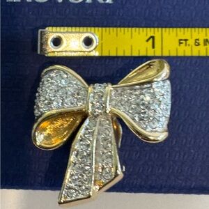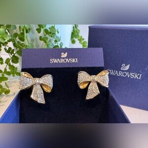 Authentic SWAROVSKI Gold Ribbon Pave Crystal Bow Clip on Earrings