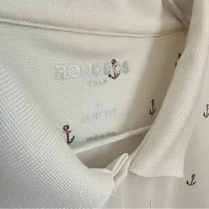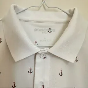 Slim fit white golf polo with nautical anchor design. Excellent used condition, only worn one time and washed one time.