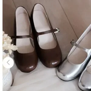 The Cottagecore Brown Leather Retro Round Toe Mary Jane Heels 39 7.5/8