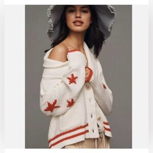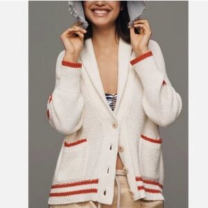 Anthropologie Maeve American Flag USA Chunky Knit Cardigan Sweater XL NEW with tags. Shawl collar. 58% cotton 42% Acrylic. Button Front.