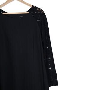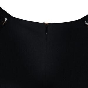 The true highlight is the intricate sheer floral lace detailing on the sleeves, adding a touch of sophisticated charm and allure to this classic black design. It's crafted from a comfortable and flexible blend of polyester, viscose, polyamide, and elastane, ensuring a perfect fit with just the right amount of stretch for all-day comfort.