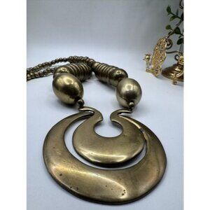 Vintage Mid-Century Modernist Brass Necklace MCM Beaded Statement Tribal Boho XL
