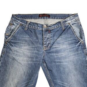 Keywords: Denim, Jeans, Bootcut, Mid-Rise, Medium Wash, Casual, Comfortable, Stylish, Fashion, Women's Fashion, Everyday Wear, Classic, Versatile, Haksever, Hemmed Jeans, Size 34, Inseam 31, Blue Jeans, Western Wear, Retro, Vintage Style, Pre-owned, Gently Used, Great Condition, Wardrobe Staple.