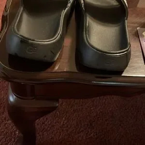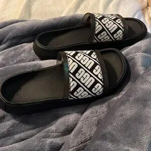 Chic UGG slides with bold logo design. Ideal for everyday comfort.