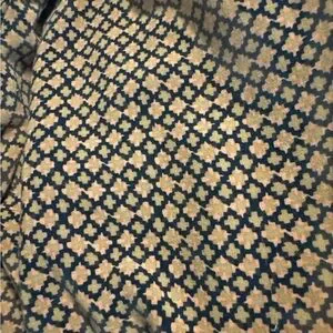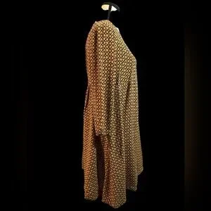 Chic 3/4 sleeve dress with a geometric black and gold design. Perfect for stylish outings or back to school. Excellent dress for fall! No size tag so please see measurements.
