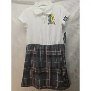 This is a Beetlejuice themed girls' school dress in a size small, perfect for a uniform costume. The dress features short sleeves and a multicolor design, made from a cotton blend material. It is a short-length dress suitable for school or everyday wear, reflecting a vintage-inspired style. Perfect for Beetlejuice fans looking to add a fun and unique piece to their wardrobe.